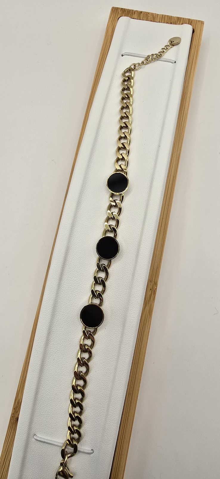 Bransoletka gruby łańcuch czarne kółka 17 cm+4cm S.STEEL 316L