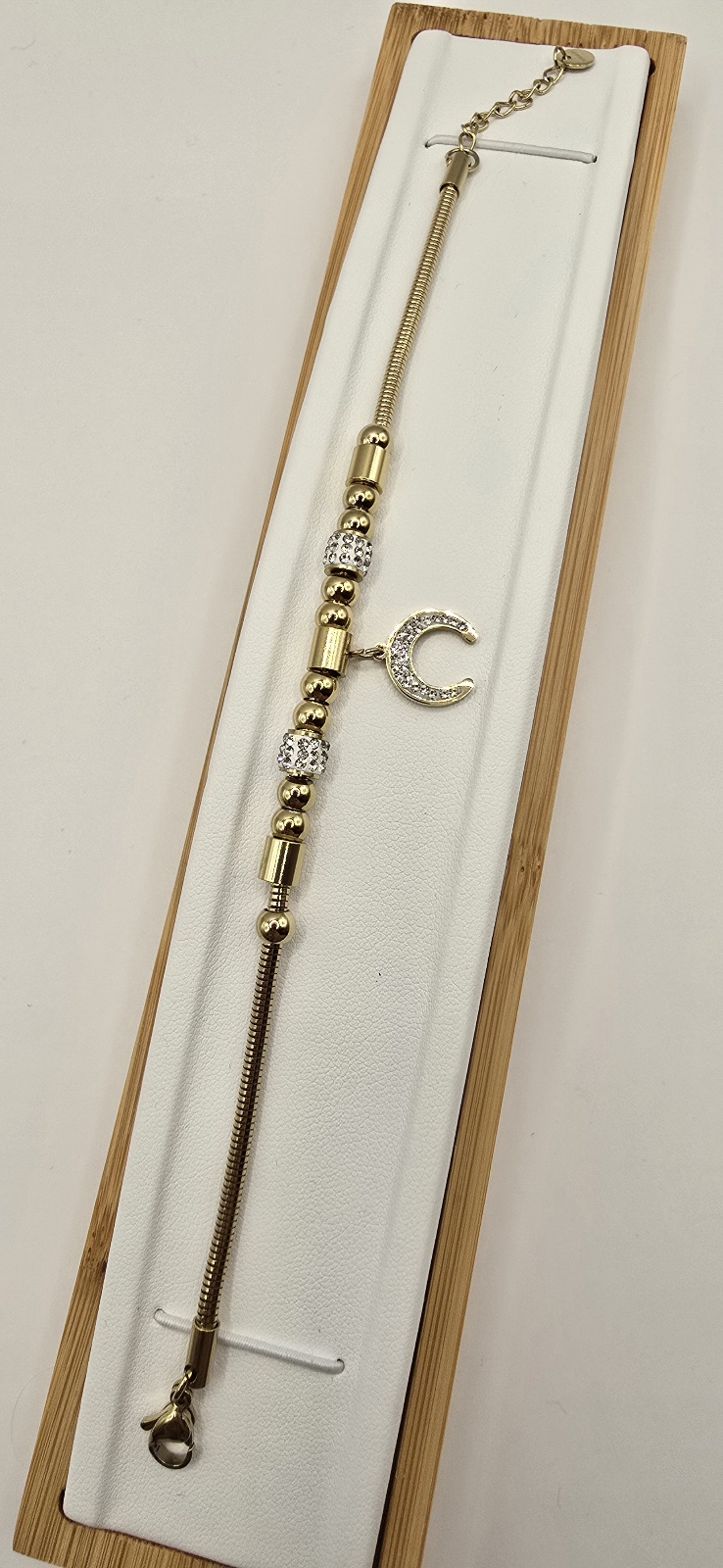 Bransoletka księżyc z cyrkoniami 18cm+ 4cm S.STEEL 316L