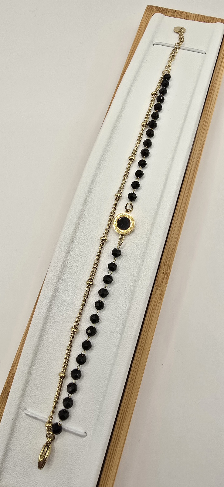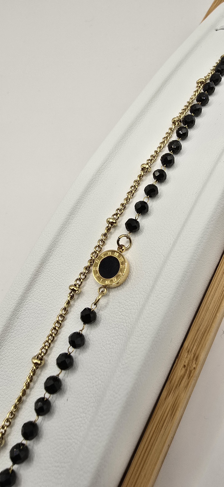 Bransoletka podwójna czarne koraliki kółko 17cm+3cm S. STEEL 316L