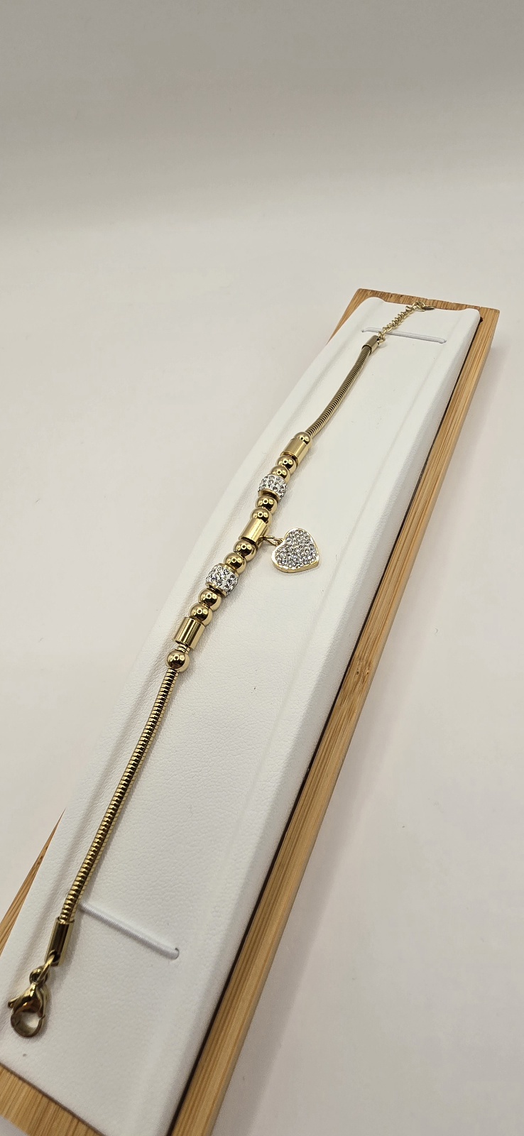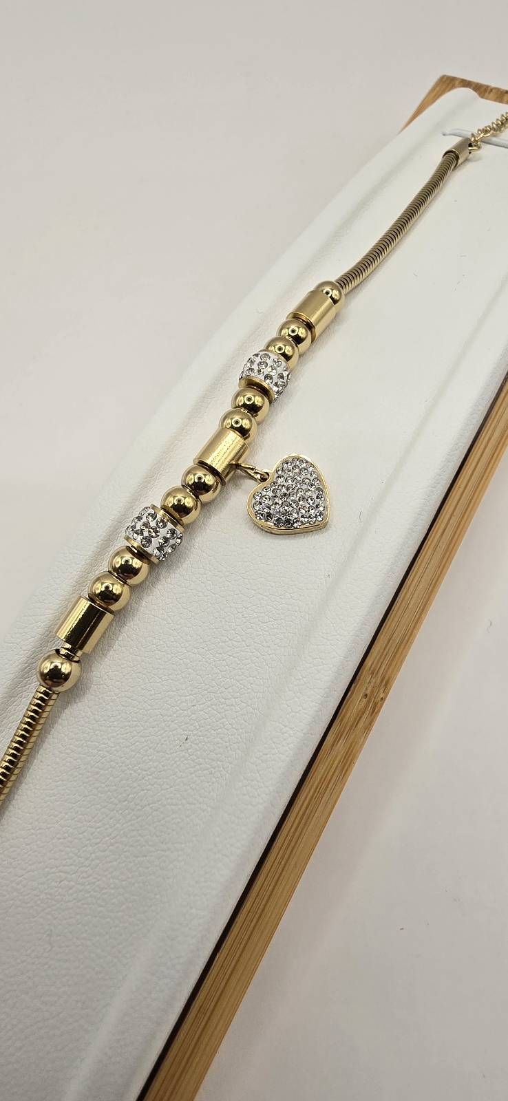 Bransoletka serduszko z cyrkoniami 18cm+4cm S. STEEL 316L