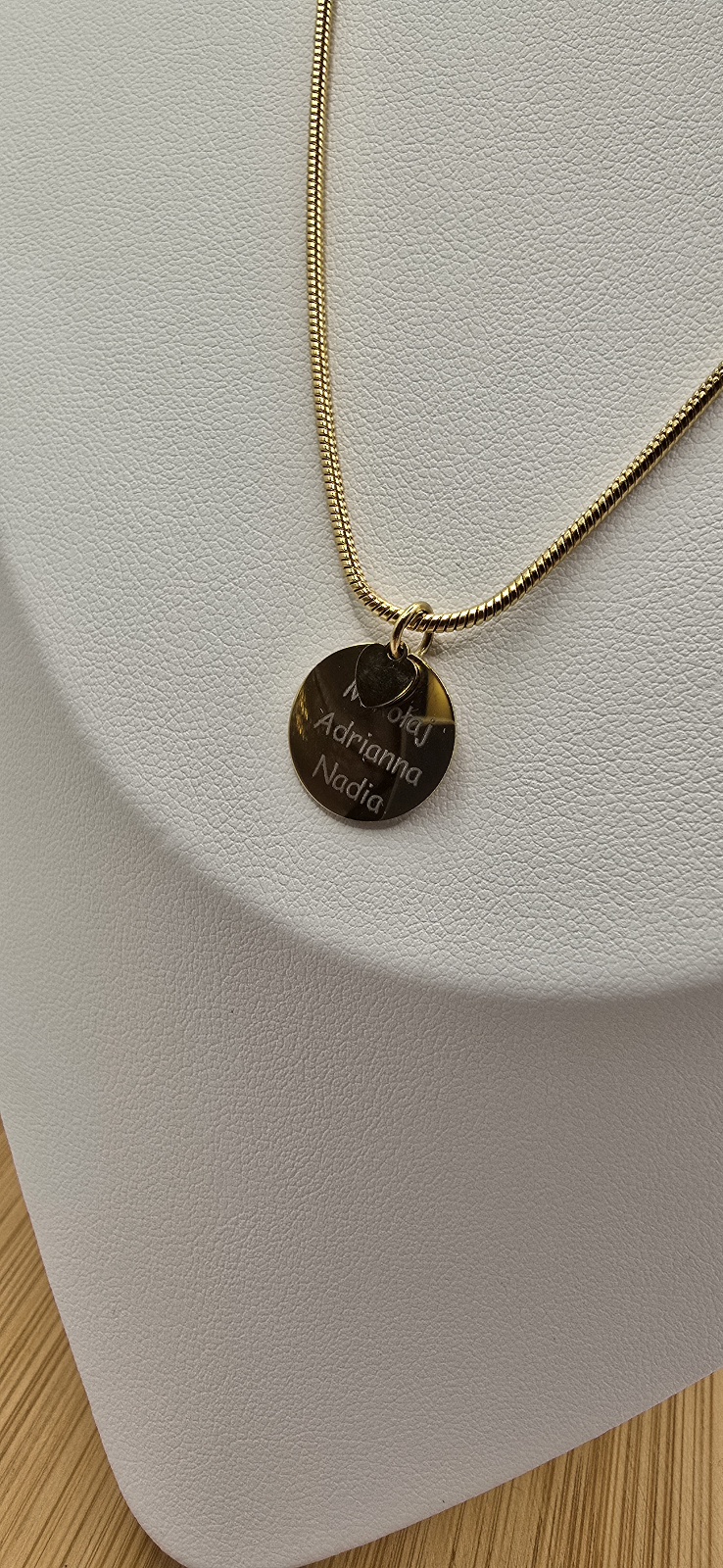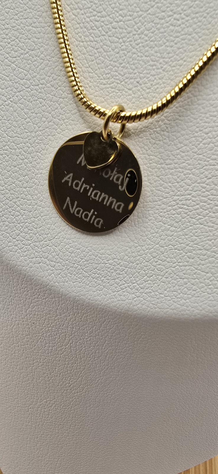 Wykonanie graweru do 25 znaków. Do wyboru zawieszka do graweru: duże serce lub duże kółko oraz dodatkowo mniejsza zawieszka.