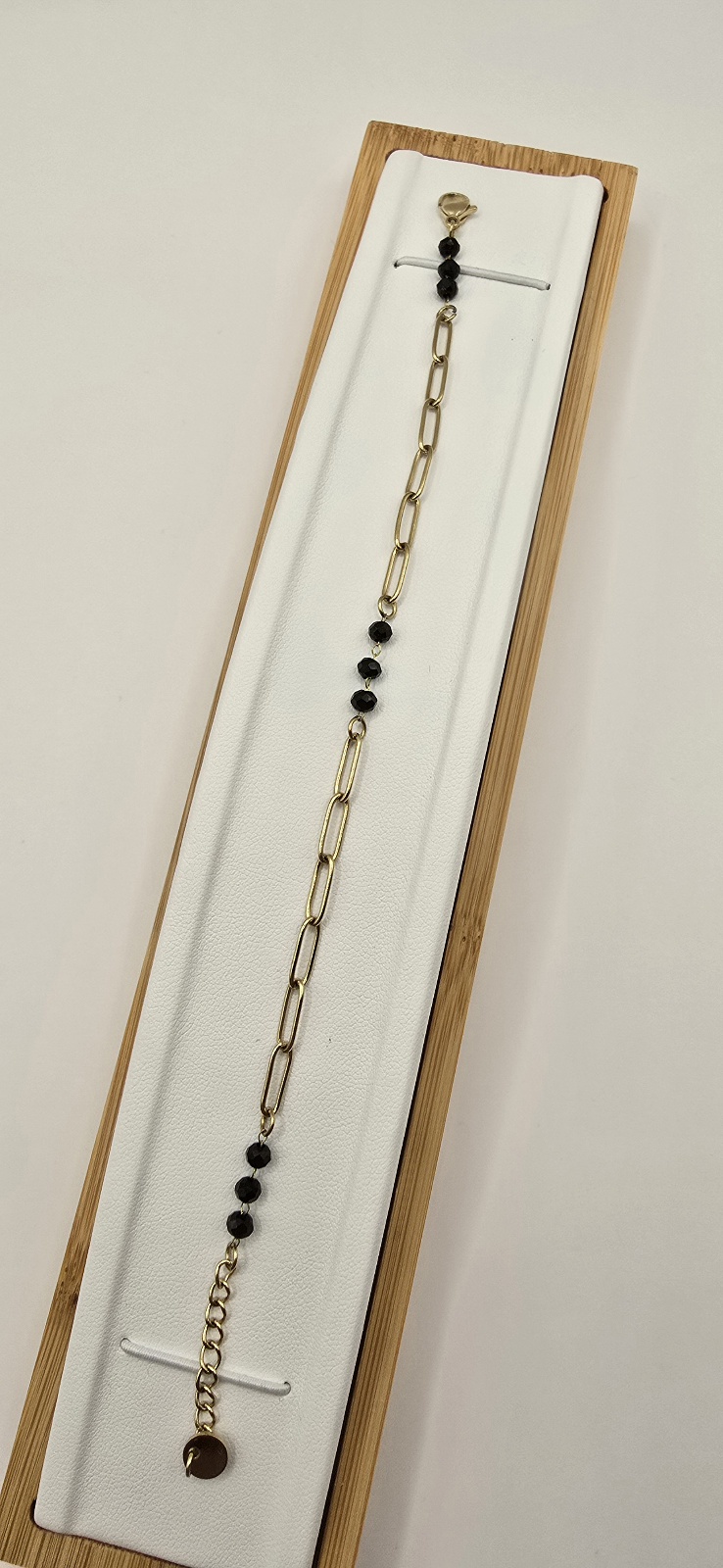 Celebrytki czarne kulki łańcuch 17cm+3cm S.STEEL 316L