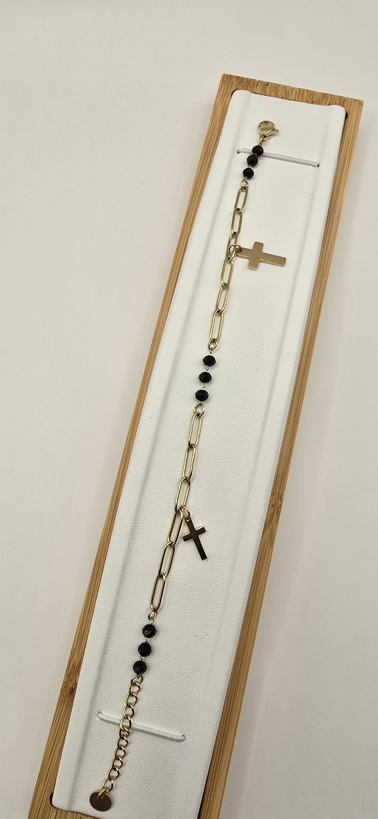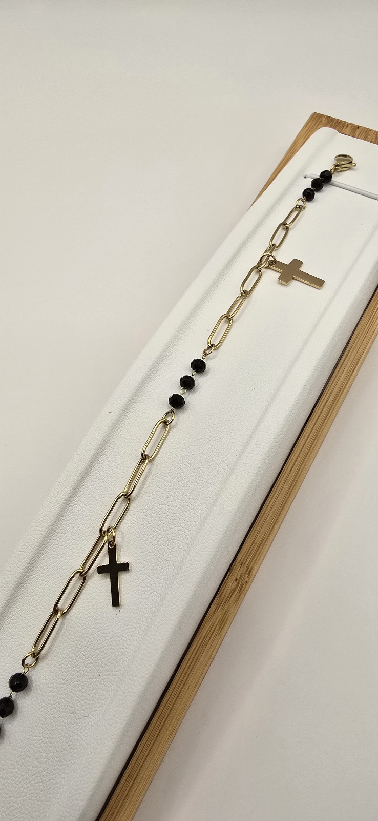 Celebrytki krzyżyki czarne kulki 17cm+4cm S.STEEL 316L