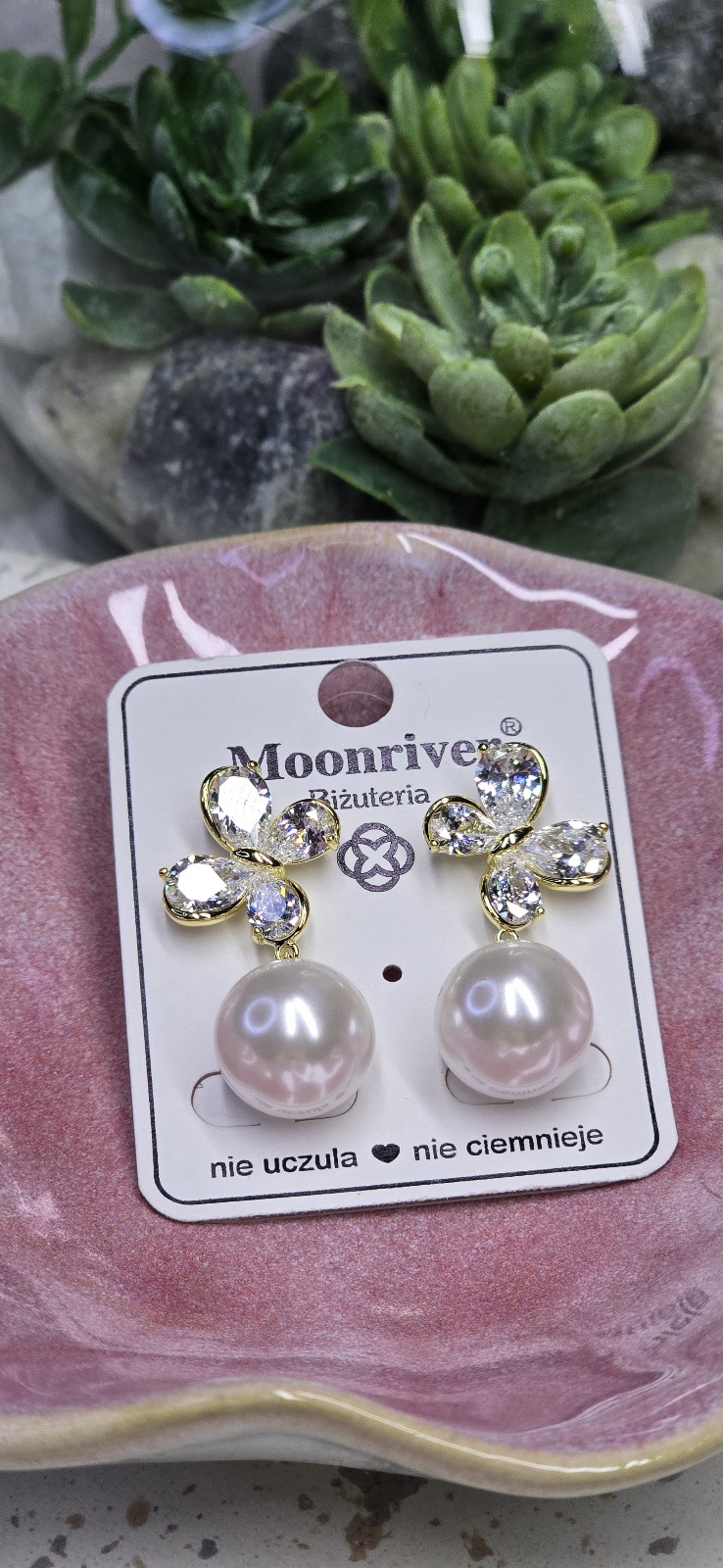 Kolczyki Cyrkoniowe motyle z perłą /sztyfty