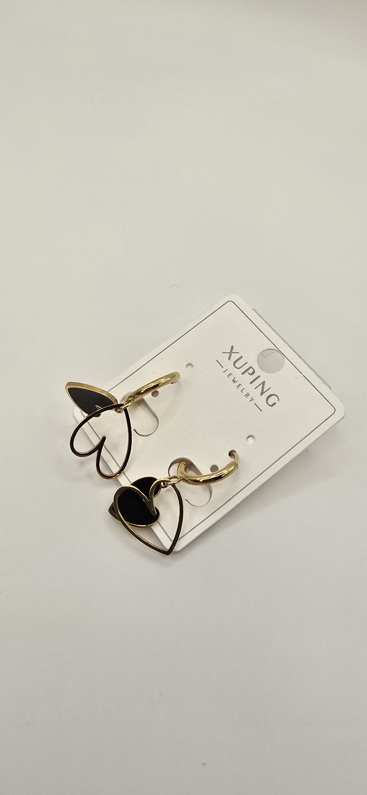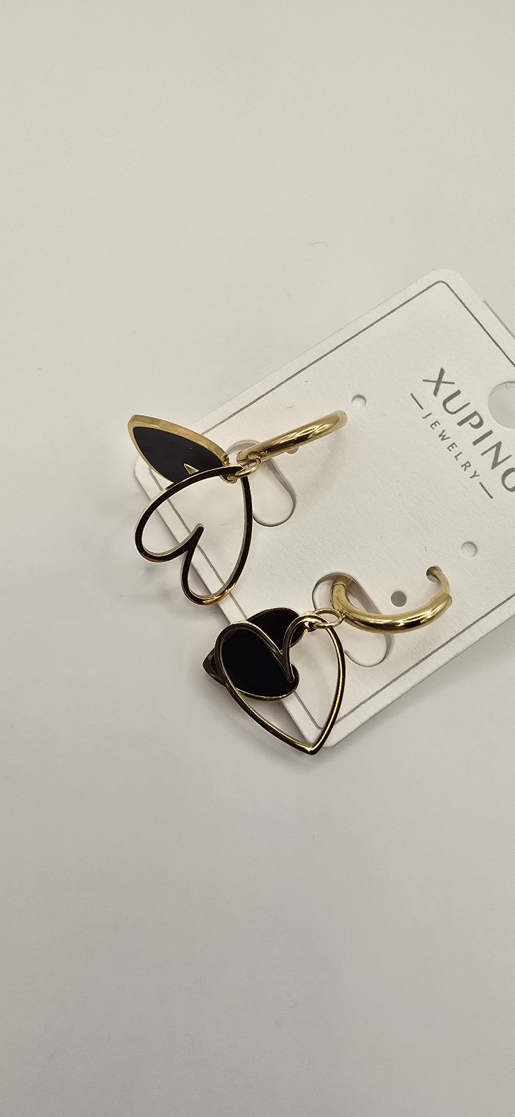 Kolczyki podwójne serca czarne