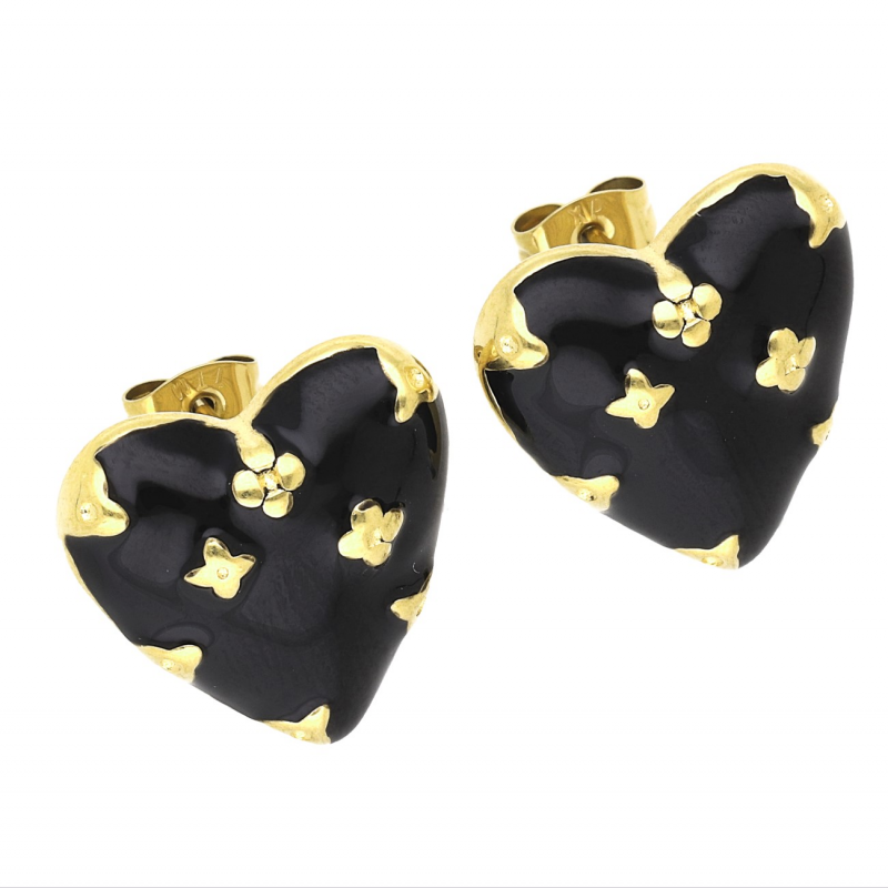 Kolczyki serca czarne 18 MM S. STEEL 316L