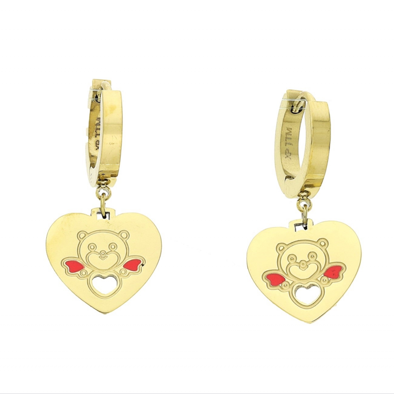 Kolczyki serduszka z misiem 28/14 MM S. STEEL 316L