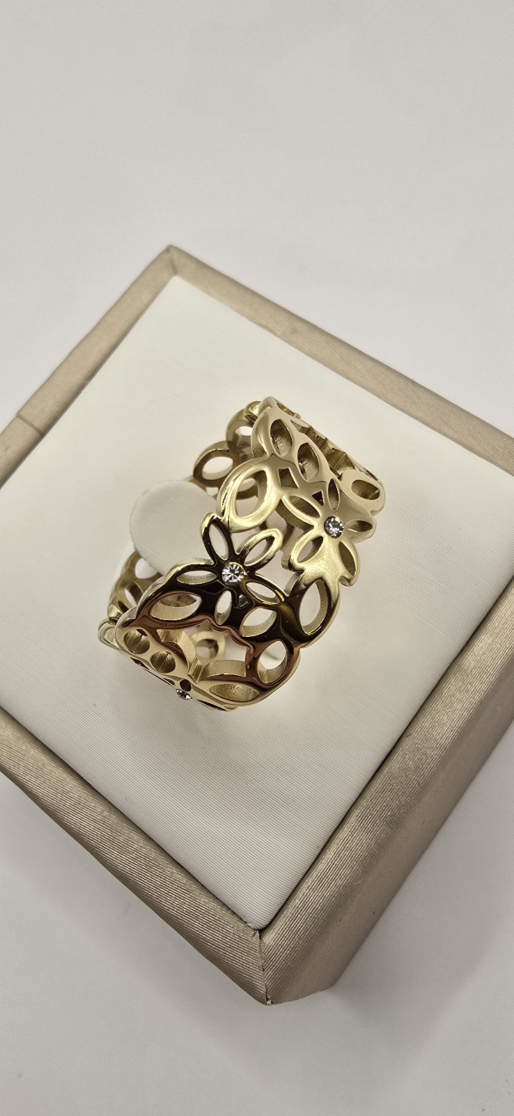 Pierścionek koronka kwiatki cyrkonie S STEEL 316L
