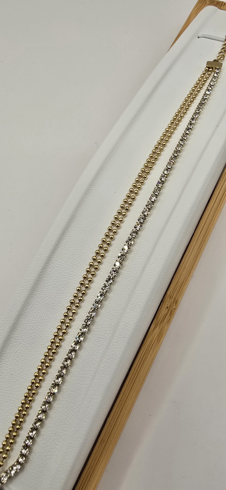 Potrójna bransoletka cyrkonie 17cm+4cm SSTEEL 316L