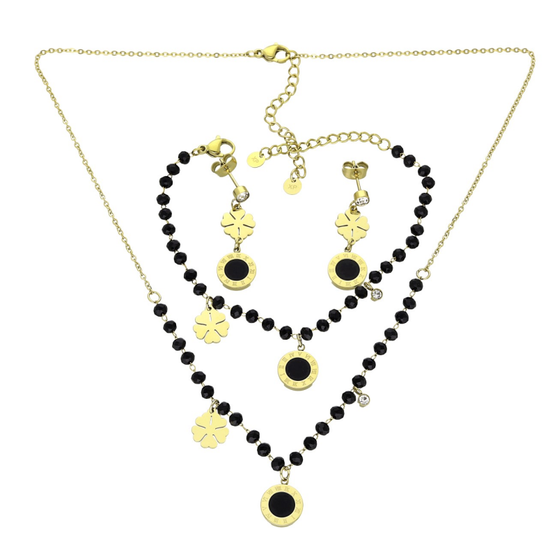 Zestaw z kolekcji WIZZUBI wykonane z wysokiej jakości stali chirurgicznej 316L w złotym kolorze.